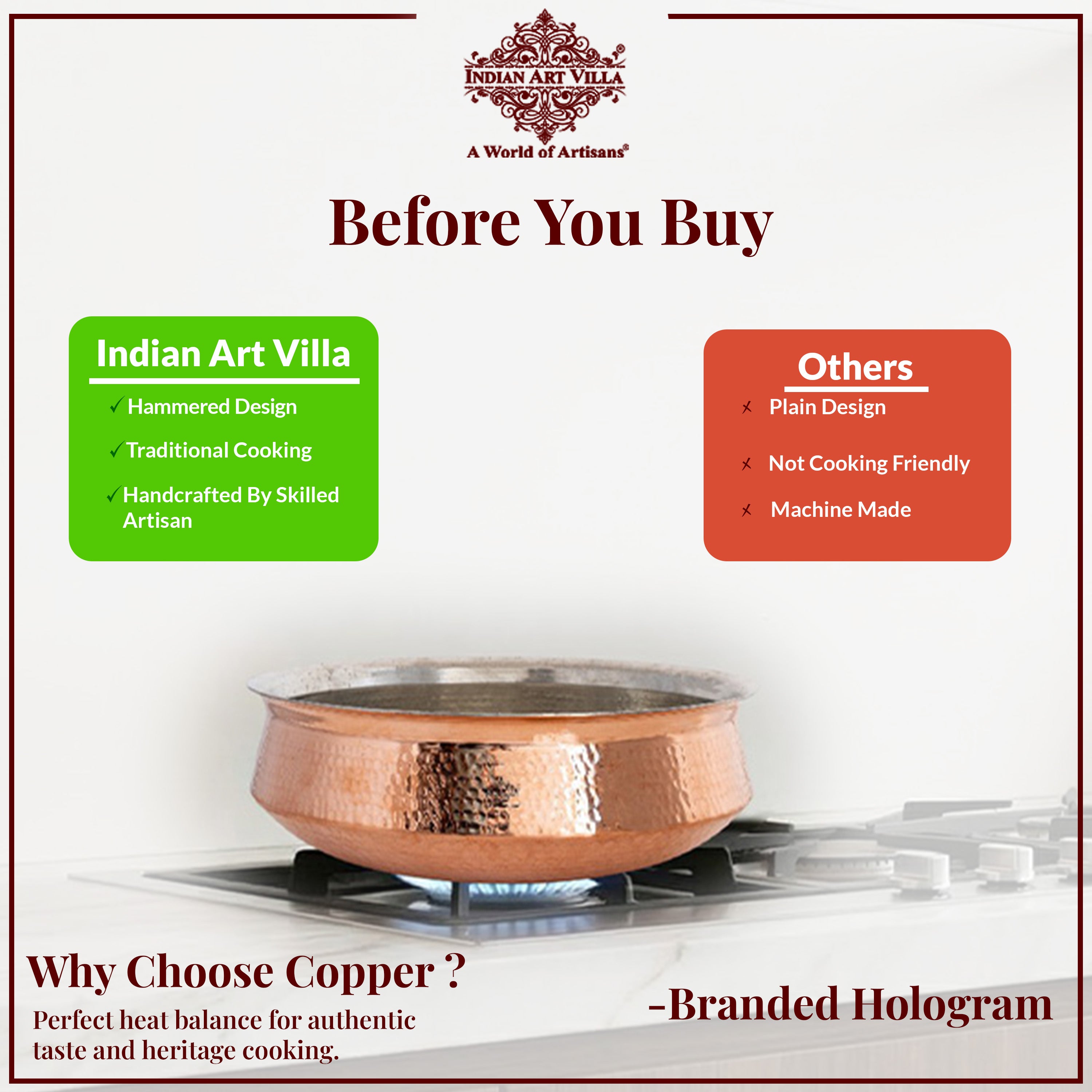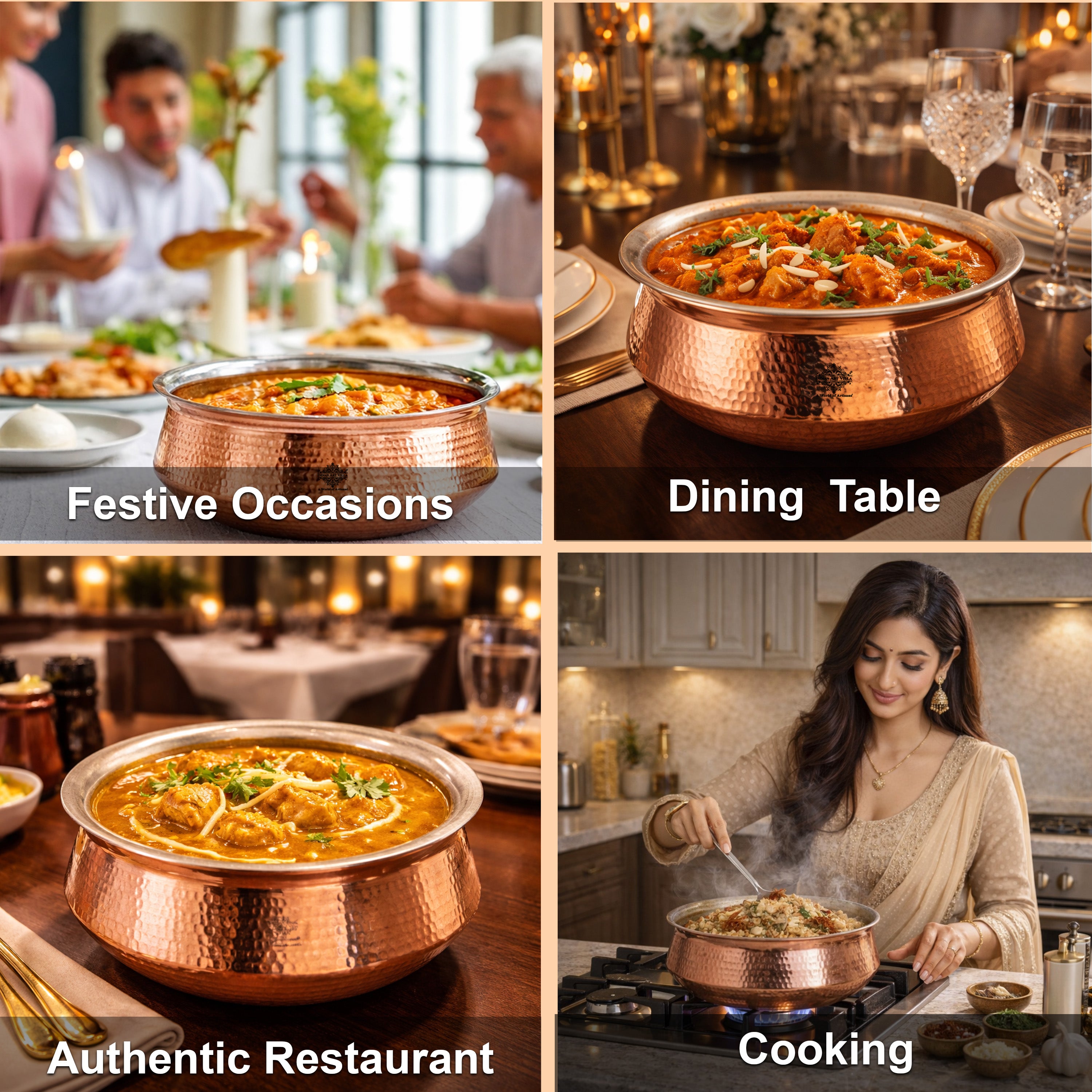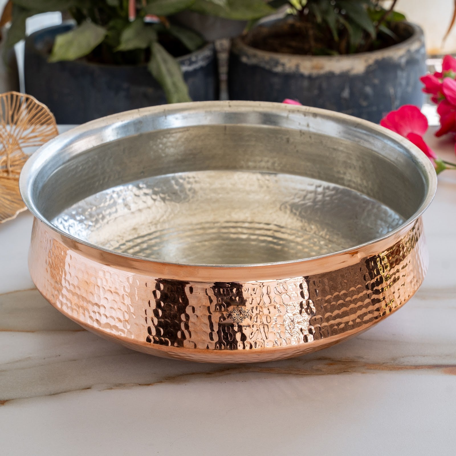 Pure Copper Hammered Lagan Handi With Tin Lining For Cooking