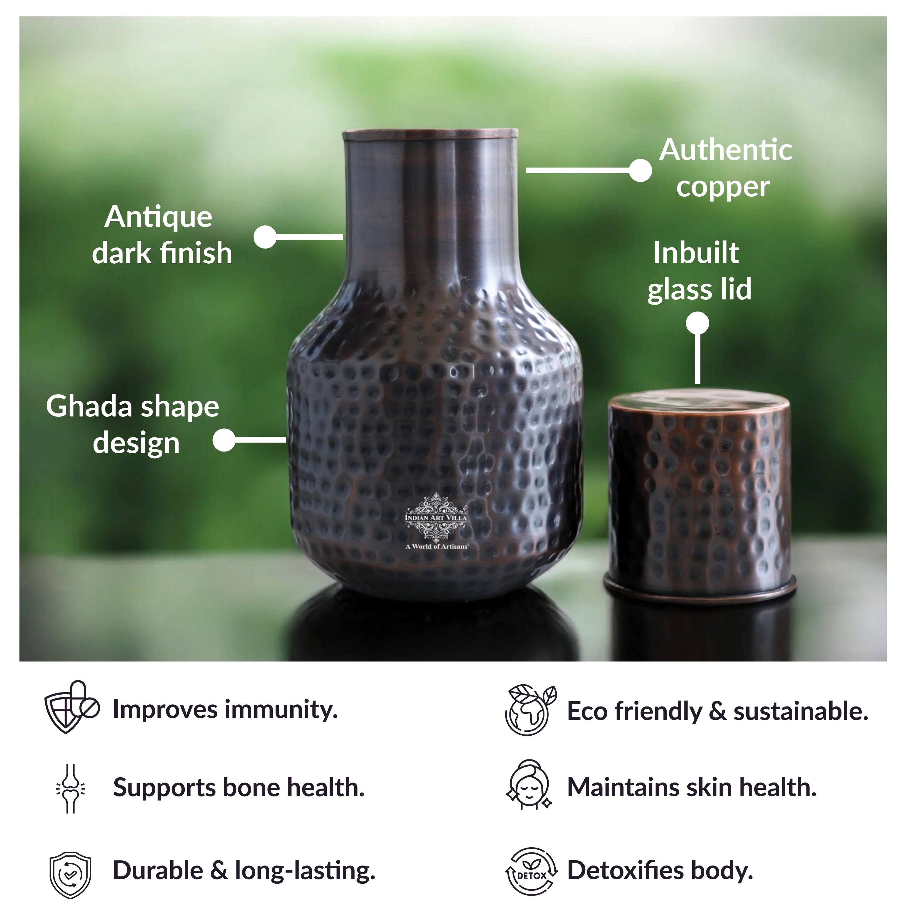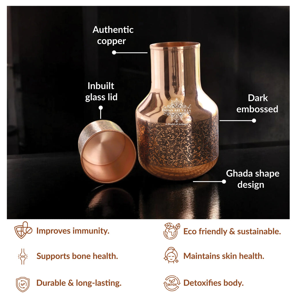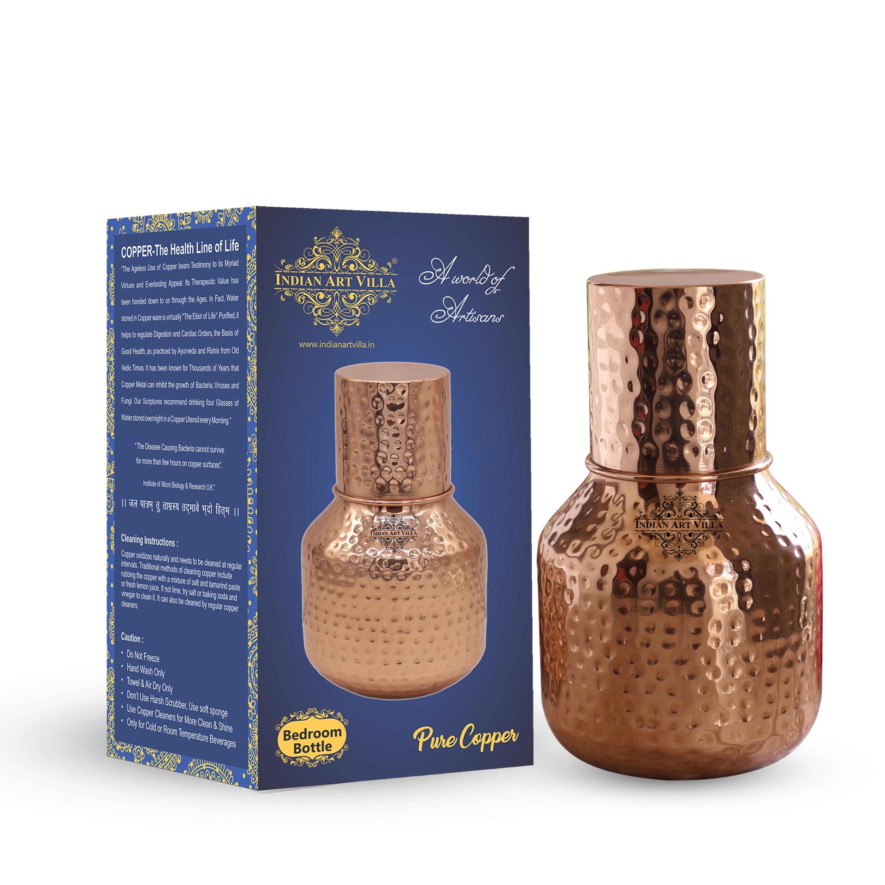 - Indian Art Villa Pure Copper Ghada Shape bedroom bottle with inbuilt glass, it was almost impossible to find one that came in a design other than the plain one. Indian Art Villa Provide You with different designs to choose from, allowing you to pick your favorite design or collect them all for those who want a variety of options.