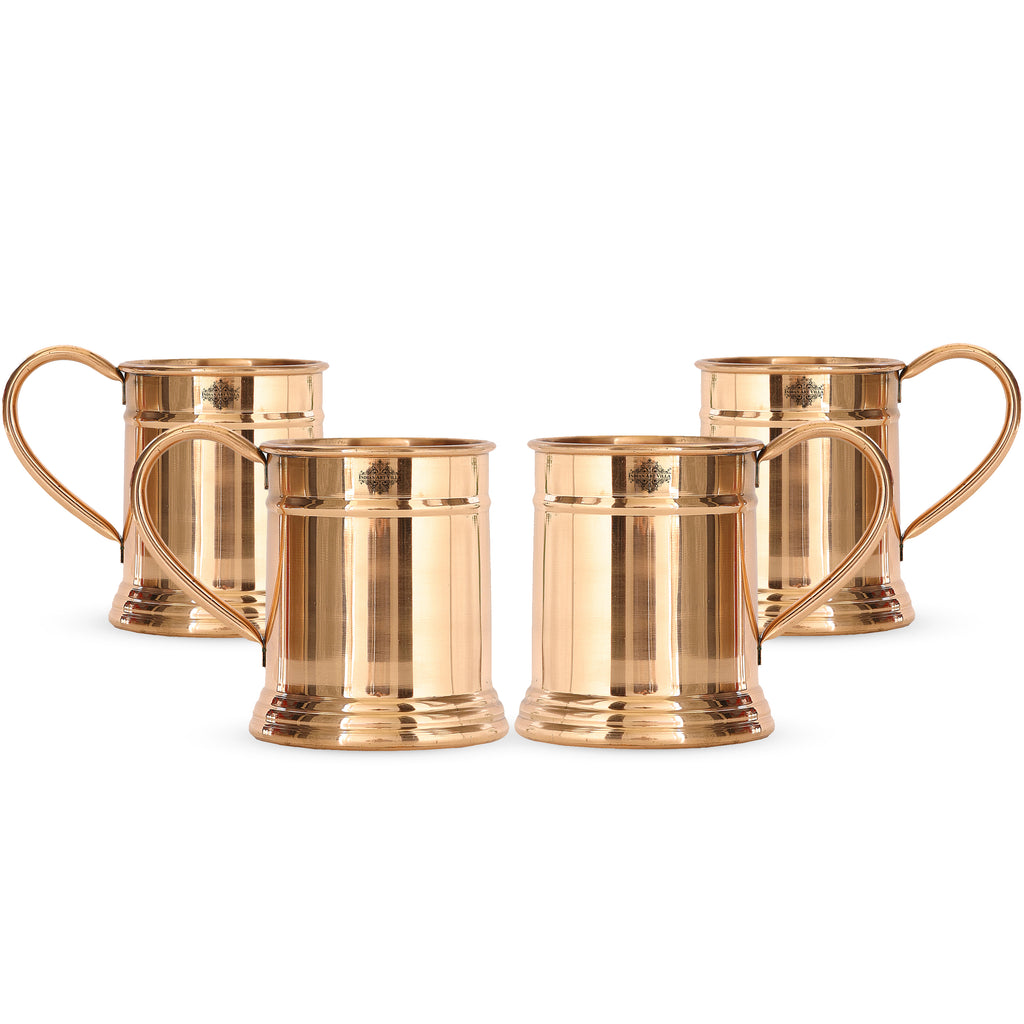 Indian Art Villa Brings Best Quality Pure Copper Handmade Matt Finish Moscow Mule Beer Mug with Copper Handle, Drinkware, Barware, with a capacity of 600ml. Copper is able to change temperatures virtually instantly, which makes it a perfect material to use for mugs intended for cold beverage use. Metallic surfaces already feel colder when you drink out of them, and copper mugs significantly enhance that feeling. This Beautiful Pure Copper Handmade Matt Finish Moscow Mule Beer Mug with Copper Handle can be used as a home decor item or it can also be gifted to your near and dear ones. Also, Make your home more lively and cheerful with this brilliant decor piece. If you’re looking for the finest quality Copper, you have come to the right place! We, at have around a decade-long experience in terms of manufacturing copper products and have our own unique collection of Copper Beer Mug to shop from. Designed to accentuate the beauty and ambiance it brings soothing vibes to your abode and raises its contemporary look manifolds. It is sheer elegance and contemporary in look. It is durable and sturdy and with proper cleaning will shine as new every time. Indian Art Villa Copper items have antique designs. The item is highly durable, elegant, and a wonderful addition to your Home Decor.
