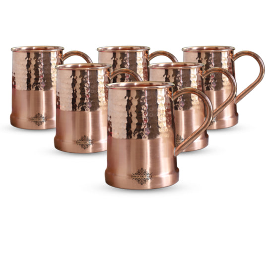 - These Pure Copper Moscow Mule Beer Mug With Half Lecquer & Hammer Mug Design also have Trendy looks for better ergonomics. You can add Royal Vintage Look to your Hotel & Bar by using these Sets for your Drinkware/Serveware Purpose.