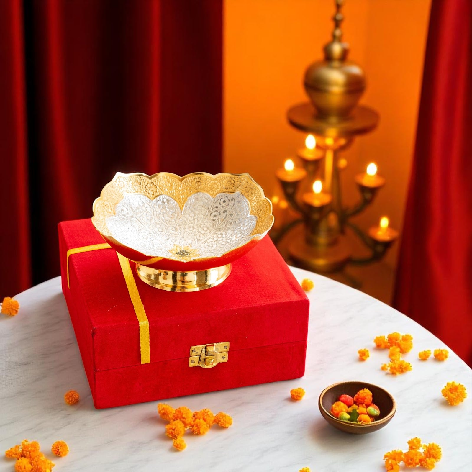 - Indian Art Villa Silver Plated Gold Polished Designer Round Big Bowl, it was almost impossible to find one that came in a design other than the plain one. Indian Art Villa provides you with different designs to choose from, allowing you to pick your favorite design or collect them all for those who want a variety of options.