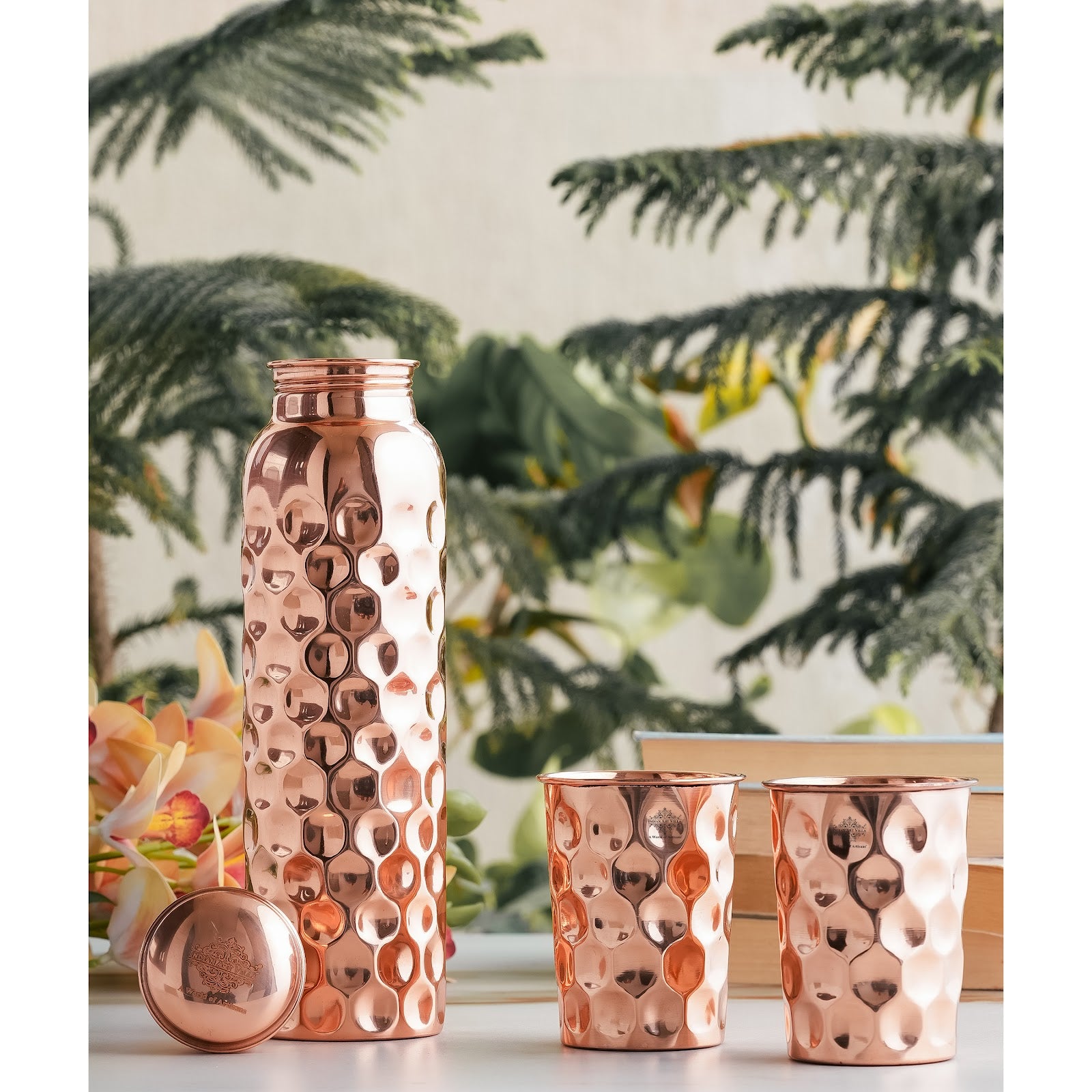- Enhance your dining table with this luxurious copper set. The intricate design adds a touch of sophistication, making it not only functional drinkware but also a decorative addition to your home or kitchen.
