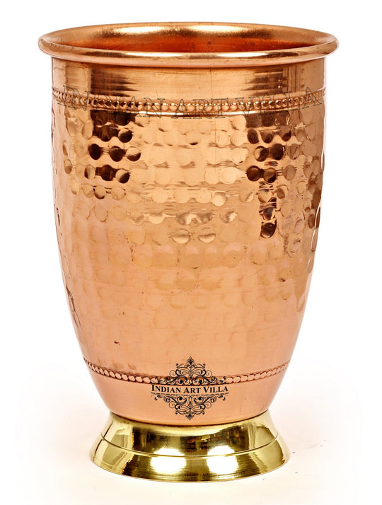 Indian Art Villa Brings Set of Pure Copper Hammered Leak Proof Cocktail Water Bottle with designer cap & Two Glasses with Brass Bottom with a Gift Box, Drinkware. We offer the best affordable prices & Free Shipping PAN India. We also offer Easy returns & exchanges. T&C Applied. Water stored overnight in copper utensils has innumerable health benefits. It has anti-bacterial properties that help purify water & remove toxins. It aids digestion & Weight loss. It protects us from diseases like arthritis, anemia, blood pressure, hyperthyroid, and cancer and relieves us of joint pains. It has immense skin benefits too. Copper is an Antioxidant and anti-carcinogenic that prevents cell damage and slows aging. Copper is the primary element to produce melanin (pigmentation of eyes, hair, and skin) in the human body. One should make it a habit of drinking water stored in copper utensils so as to keep themselves healthy. Storing water in copper bottles is eco-friendly and hygienic. It maintains the temperature of water Longer than usual.