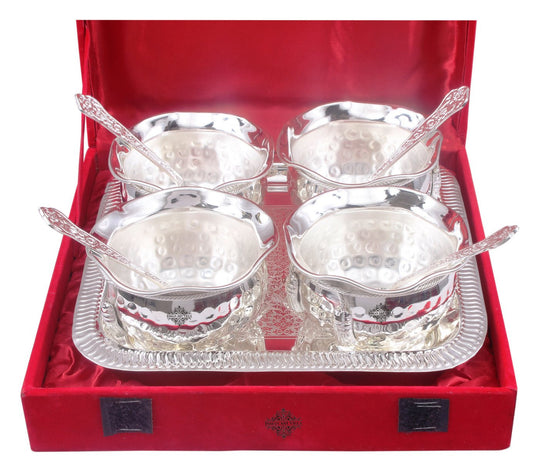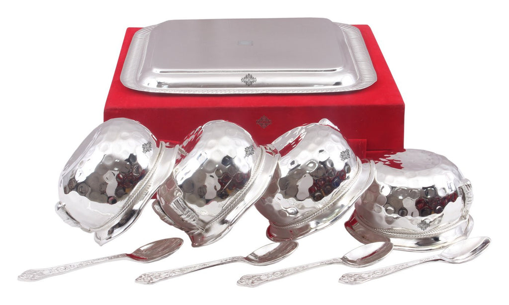 - Order this Silver Plated Hammer Bowl with 4 Spoon & Embossed Design 1 Tray from Indian Art Villa at Great deals & offers and get a Contactless delivery at your doorstep.