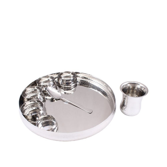 Material: The thali set is likely made of high-quality stainless steel, offering durability, corrosion resistance, and ease of cleaning.