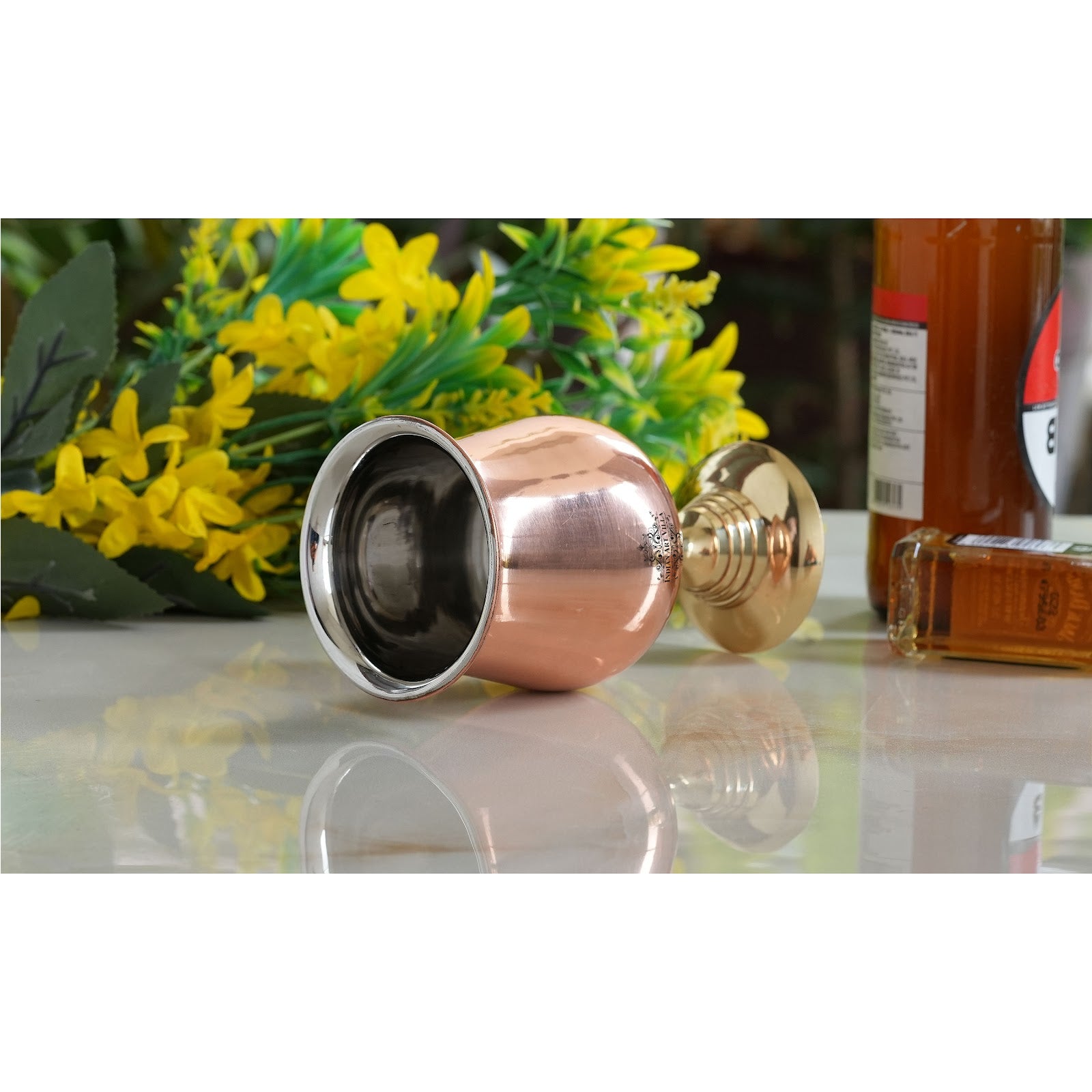 - This Steel Copper Goblet Glass with Brass Botom also has Trendy looks for better ergonomics. You can add Royal Vintage Look to your Home & Hotel by using this Steel Copper Glass as your Drinkware / Serveware.