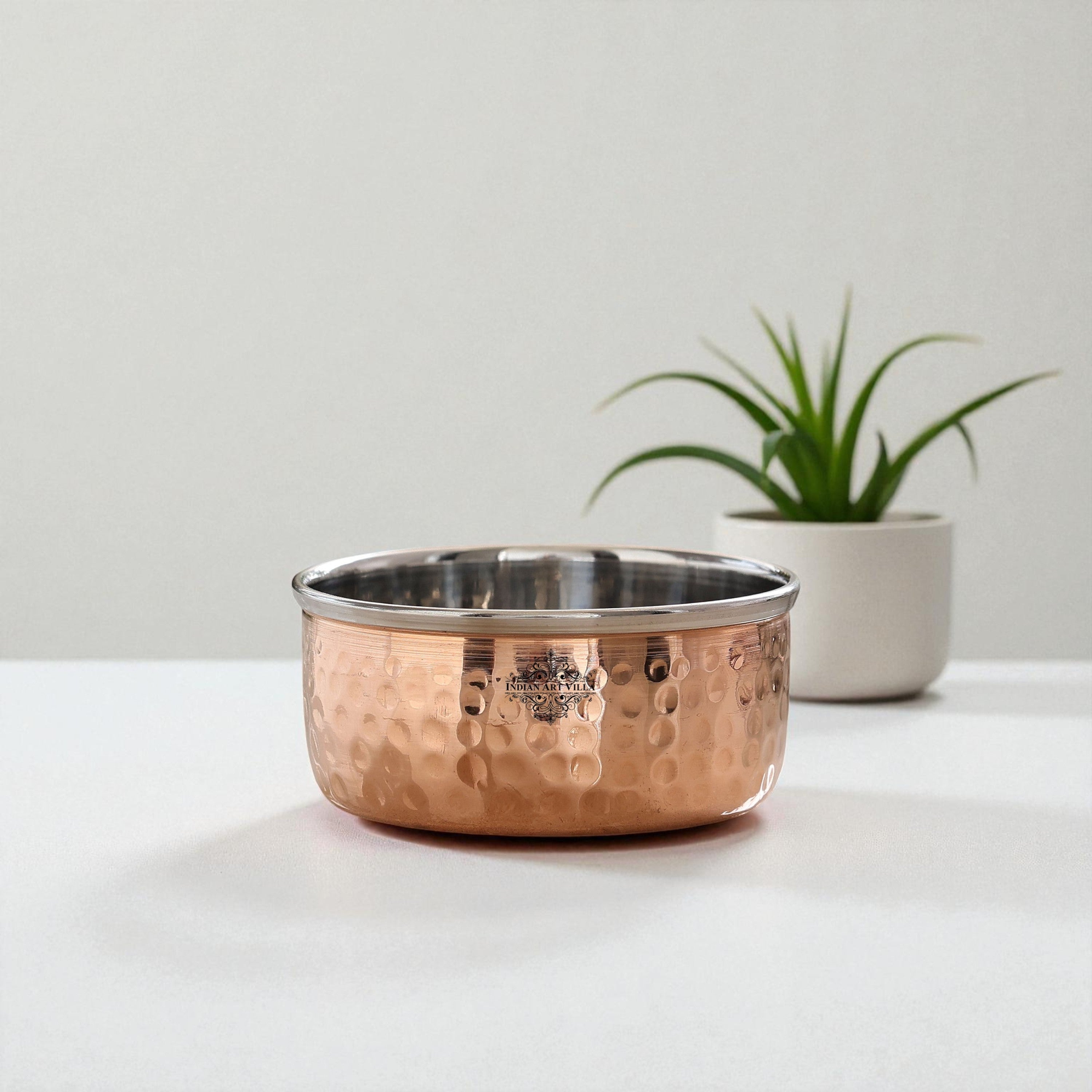 Indian Art Villa Presents Best Quality Steel Copper Hammered & Chutney Bowls. We offer best affordable prices & Free Shipping PAN India. We also offer Easy returns & exchanges. T&C Applied. When talking about dinner set, it is something which has the power to make or break the beauty of dining table. Having meals in Copper dinner set / Dinnerware gives a royal touch as well as improves your overall health. Copper is an Antioxidant and anti-carcinogenic that prevents cell damage and slows aging. Copper is primary element to produce melanin (pigmentation of eyes, hair and skin) in human body. One should make it a habit of drinking water stored in copper utensils so as to keep themselves healthy. Serve your Indian Cusine in this elegant traditional Bowl.