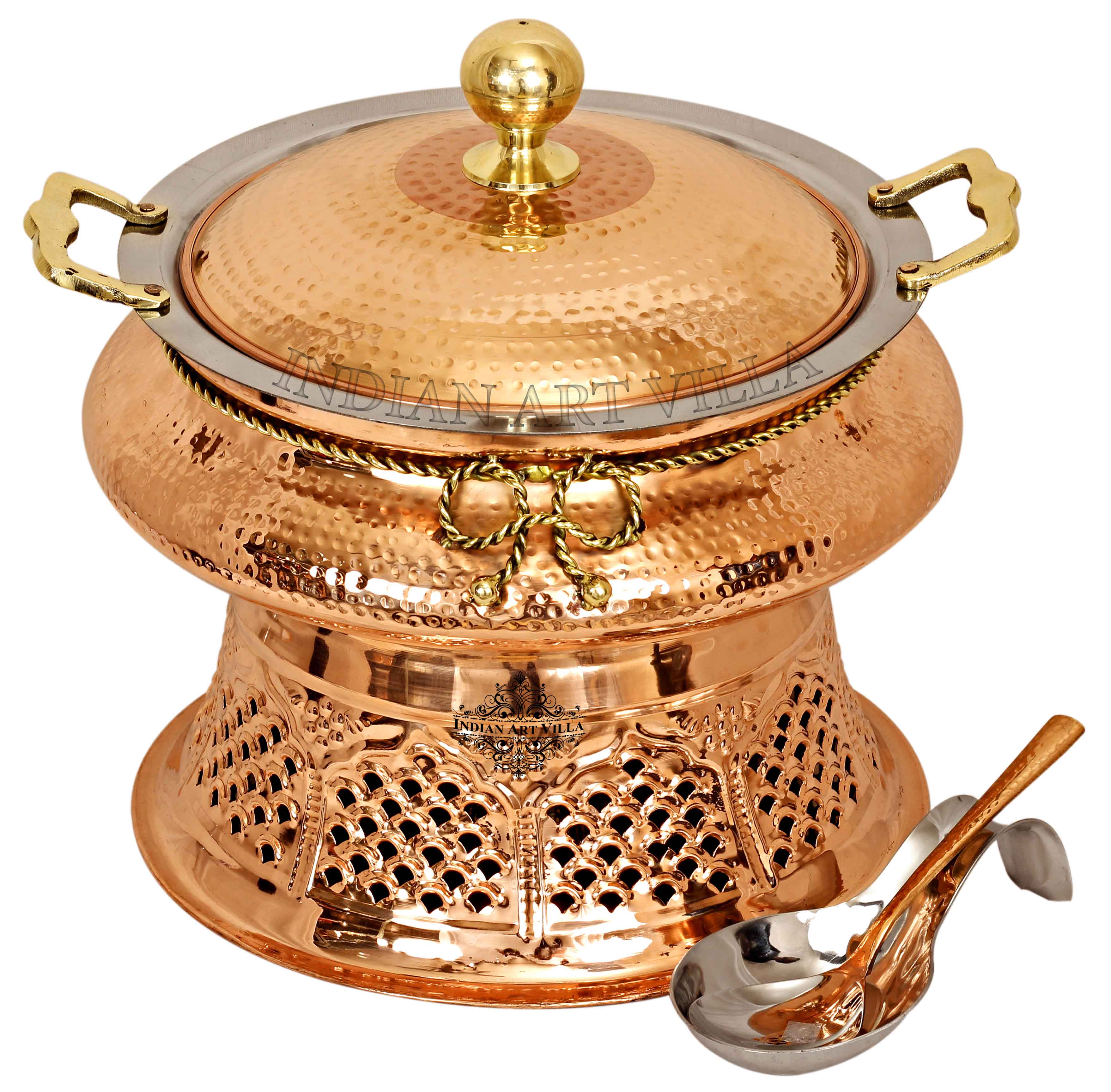 - Indian Art Villa Pure Steel Copper Chafing Dish with Stand and Spoon, it was almost impossible to find one that came in a design other than the plain one. Indian Art Villa Provide You with different designs to choose from, allowing you to pick your favorite design or collect them all for those who want a variety of options.