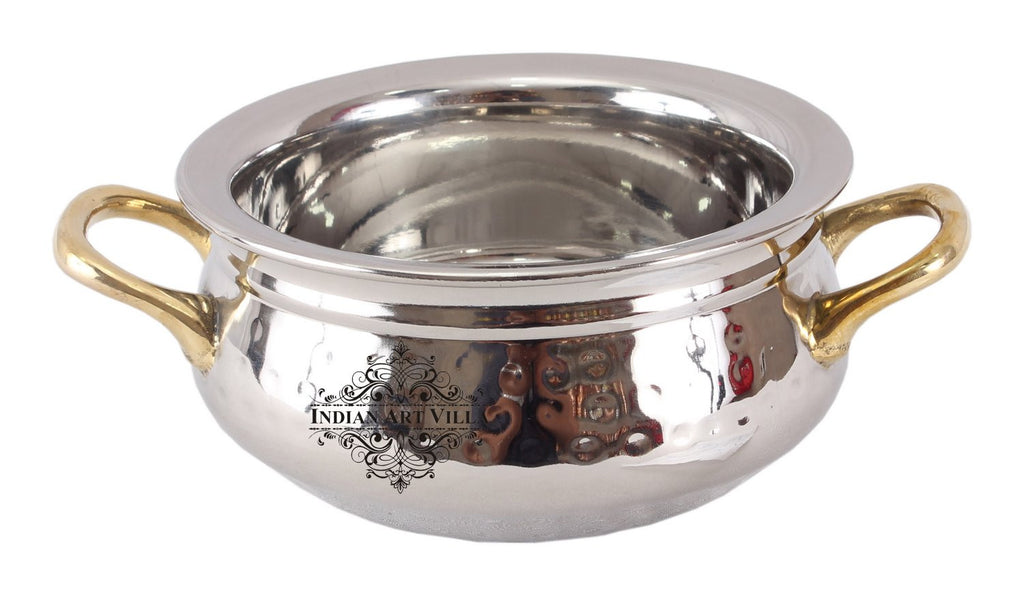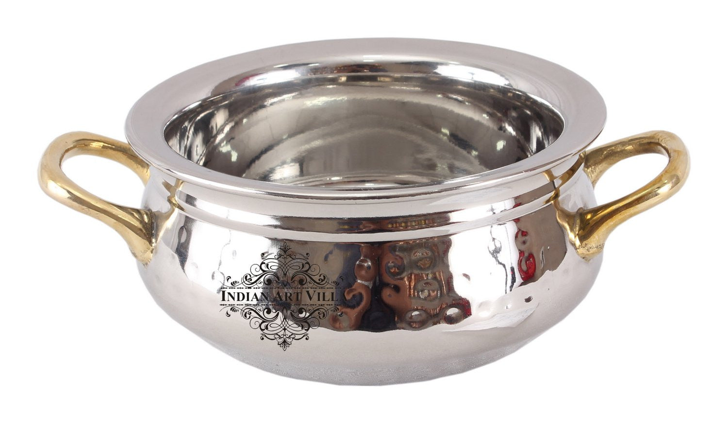 - Indian Art Villa Pure Steel Hammered Design Handi with Brass Handle, it was almost impossible to find one that came in a design other than the plain one. Indian Art Villa Provide You with different designs to choose from, allowing you to pick your favorite design or collect them all for those who want a variety of options.
