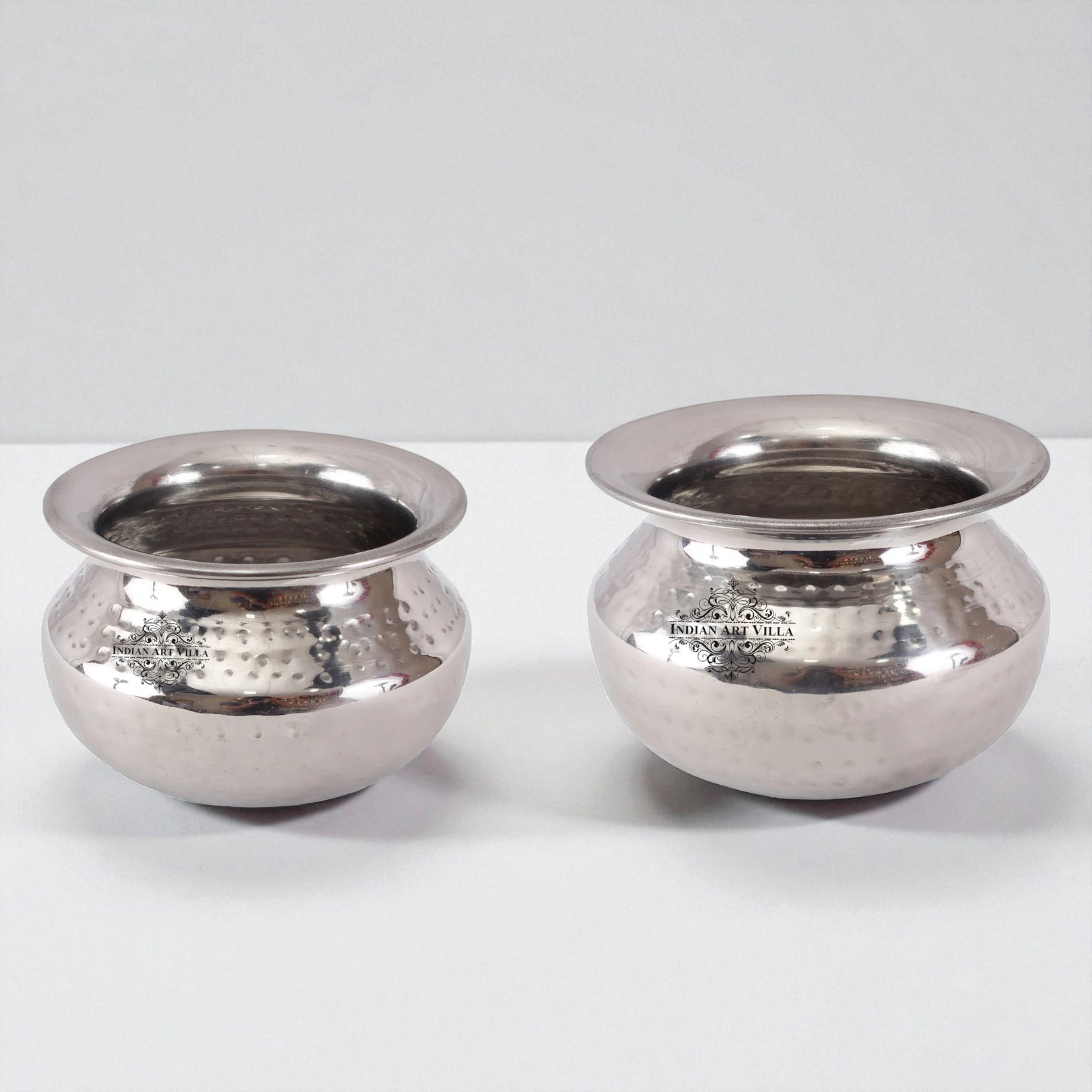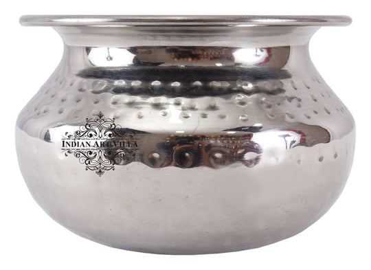 Indian Art Villa Pure Steel Punjabi Handi, Hammered Design, Set of 2 Punjabi Handi epitomizes the fusion of traditional craftsmanship and modern utility. Crafted from pure steel, these handis are a testament to durability and longevity. The classic Punjabi Handi design lends them a distinctive shape, capturing the essence of traditional Indian cookware. The set comprises two handis, adding an element of versatility to your kitchen. Whether you're cooking up a storm or presenting a culinary masterpiece, these handis are designed to meet a range of culinary needs. Their utilitarian design ensures they are not just visually pleasing but also highly functional, making them suitable for a variety of cooking styles. Indian Art Villa Pure Steel Punjabi Handi, Hammered Design, Set of 2 Punjabi Handi is a delightful marriage of form and function. From the classic Punjabi design to the hammered detailing, every aspect reflects a deep appreciation for Indian culinary traditions. These handis not only elevate your cooking experience but also serve as elegant pieces that add a touch of heritage to your kitchen.