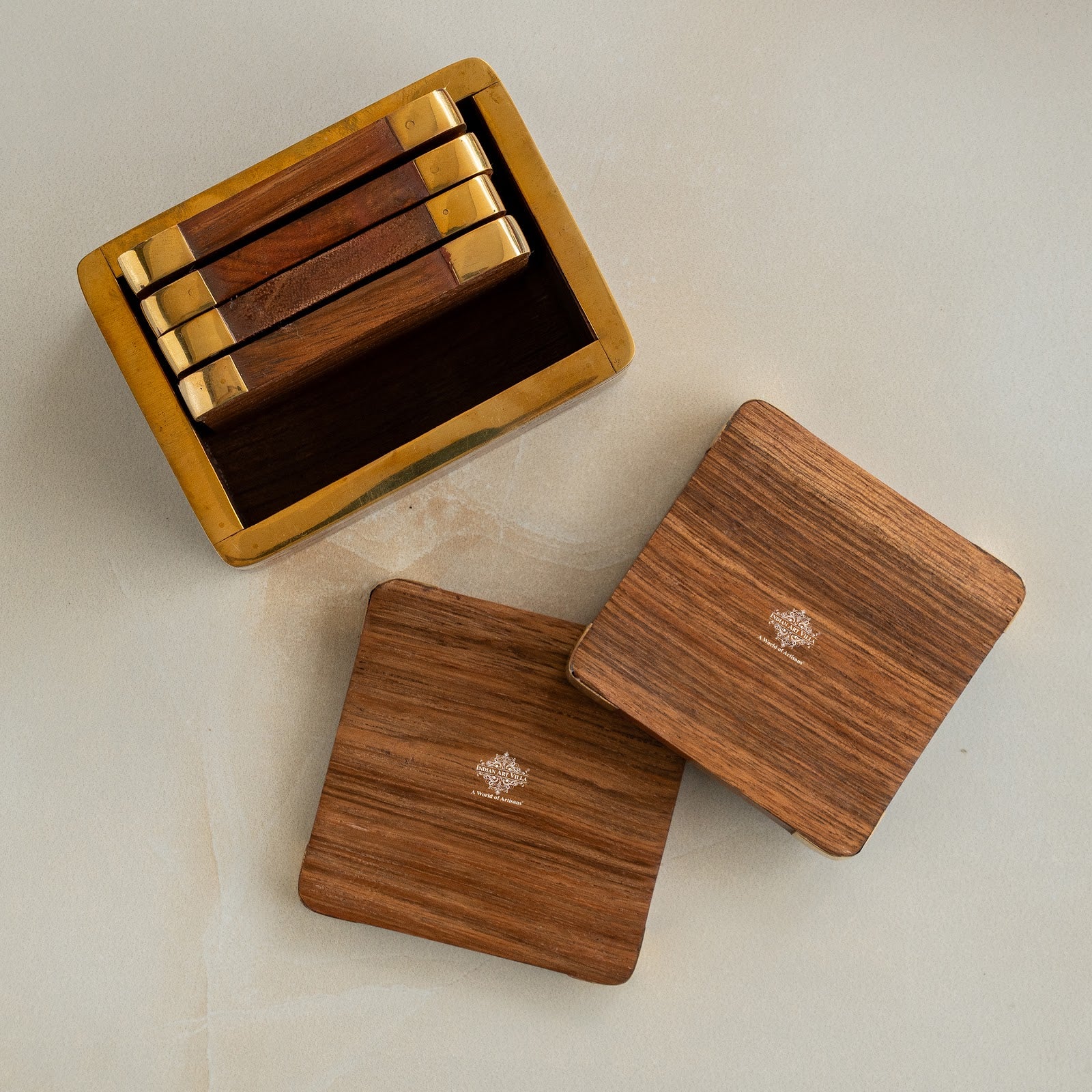 Premium Wooden & Brass Construction - Crafted from high-quality solid wood with elegant brass accents, this coaster set offers durability with a luxurious finish.